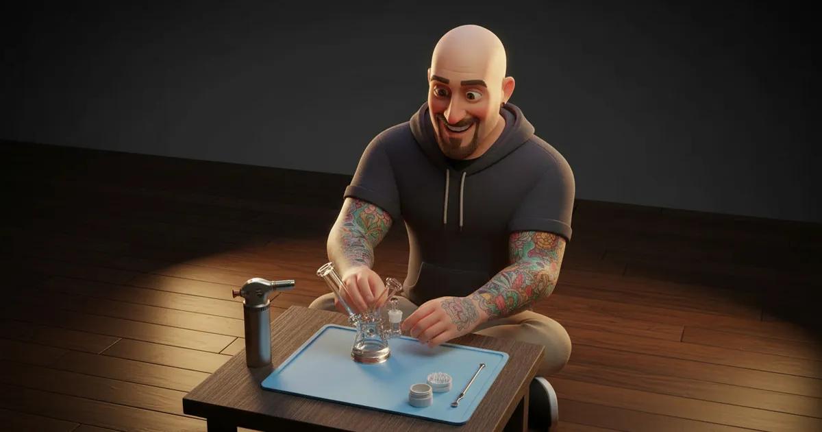 A small, simple glass rig (20 to 40 EUR) is all you need. Smaller rigs preserve flavour better for concentrates. You do not need percolators, recyclers, or fancy designs for a functional setup. Those are upgrades for later.