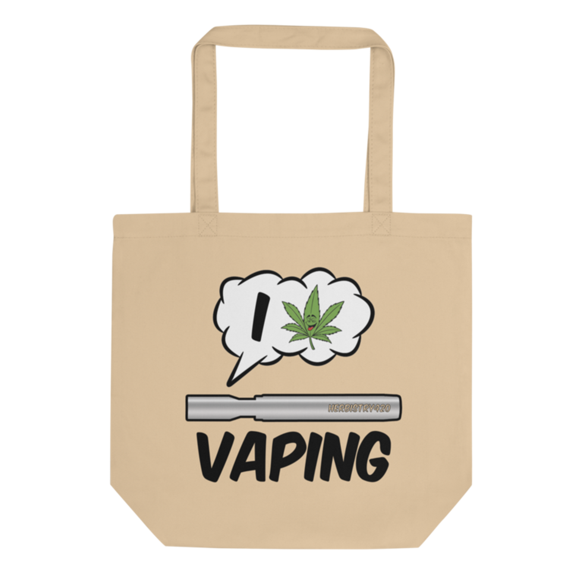 The I Love Vaping eco tote bag features a clean declaration of love for vape culture — straightforward, proud, and designed for people who've made vaping part of their daily ritual. It celebrates the craft of vaporizing without being preachy about it.