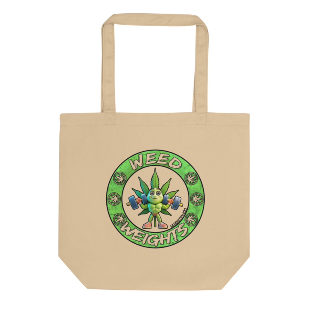 The Weed & Weights eco tote bag features a mashup of cannabis culture and gym life — because some people need both to function. The design speaks to the growing community of fitness enthusiasts who also appreciate good herb, proving the two lifestyles aren't mutually exclusive.