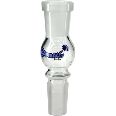 The Carball bong adaptor is a small glass attachment with a large ball-shaped chamber. Inside that chamber is a screen at the bottom and a bed of activated carbon pellets. When smoke passes through on its way to the bong water, the activated carbon absorbs contaminants, carcinogens, and impurities — leaving you with a cleaner, smoother hit.