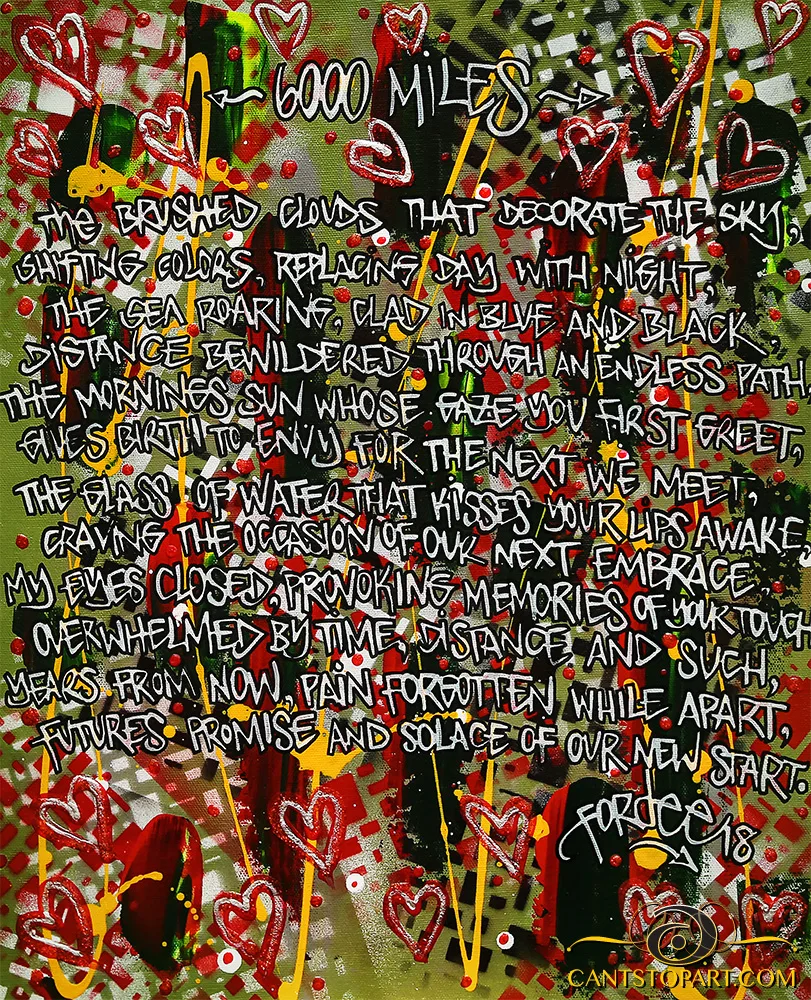 I have been an artist since childhood, my earliest influences rooted in the restless spray-paint constellations of the 1990’s Los Angeles graffiti scene. Since then I’ve followed curiosity wherever it wanders: into the subconscious, across mediums, and through the shifting borders between abstract, contemporary, pop, and street art. Each piece is less a product than a conversation, a moment where imagination briefly agrees to be seen.