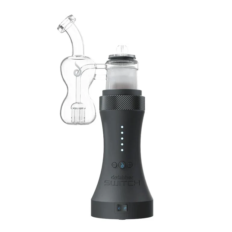 The Switch is top-heavy by design — the glass attachment sits high and the carb cap rests loosely on top. If you knock it, the glass can fall and break. Dr. Dabber sells a silicone base that adds stability, and some users 3D print carb cap holders to prevent accidents. Worth knowing before your first session on a crowded table.