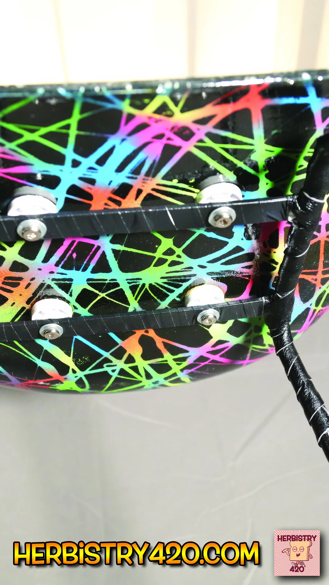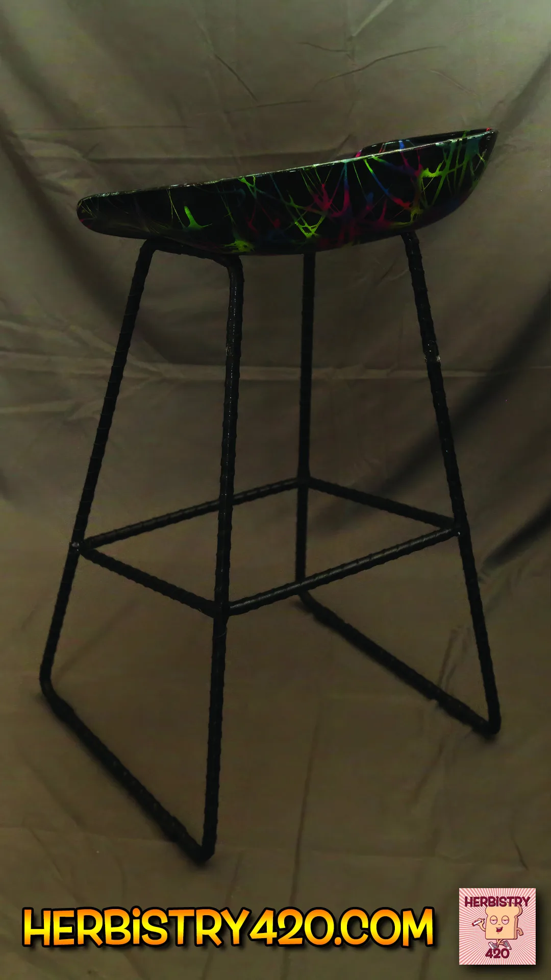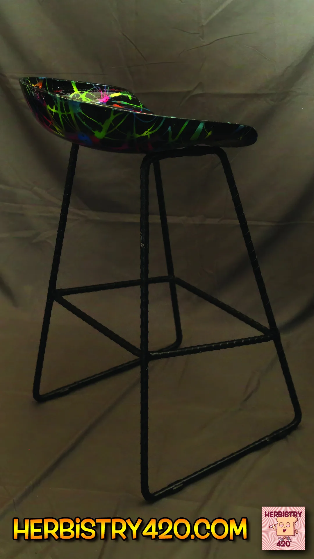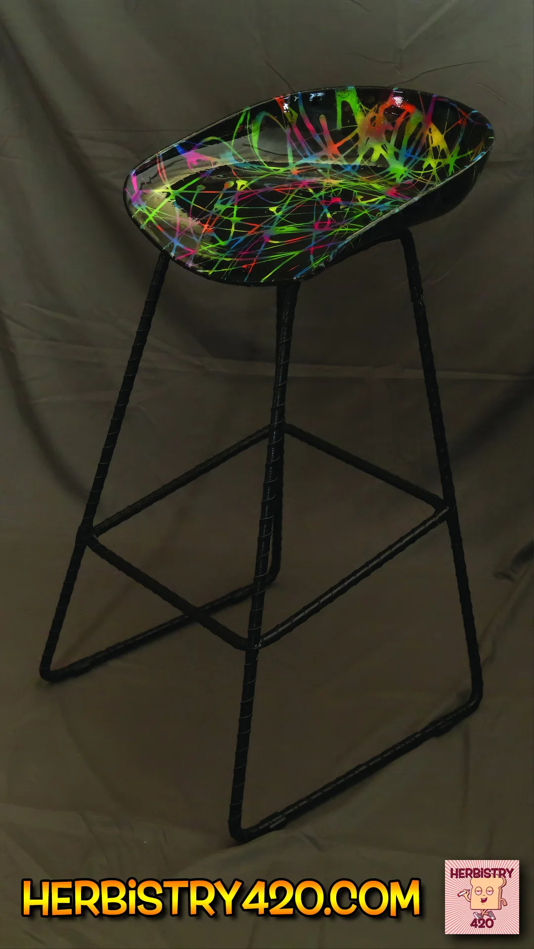 Select layers of fluorescent paint are integrated into the design, creating a striking glow under blacklight. This effect is purely an added visual enhancement — the chair remains stunning under normal lighting, with the blacklight feature serving as an optional artistic surprise.